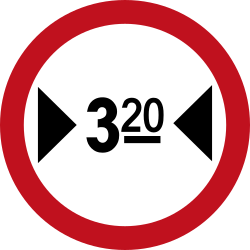 This traffic sign indicates a warning for a limited width. It alerts drivers—especially those of wide vehicles—that the road, tunnel, or passage ahead has a restricted width. Drivers should check their vehicle’s width. Common Locations: narrow tunnels, bridges, underpasses, historic town centers and construction zone.