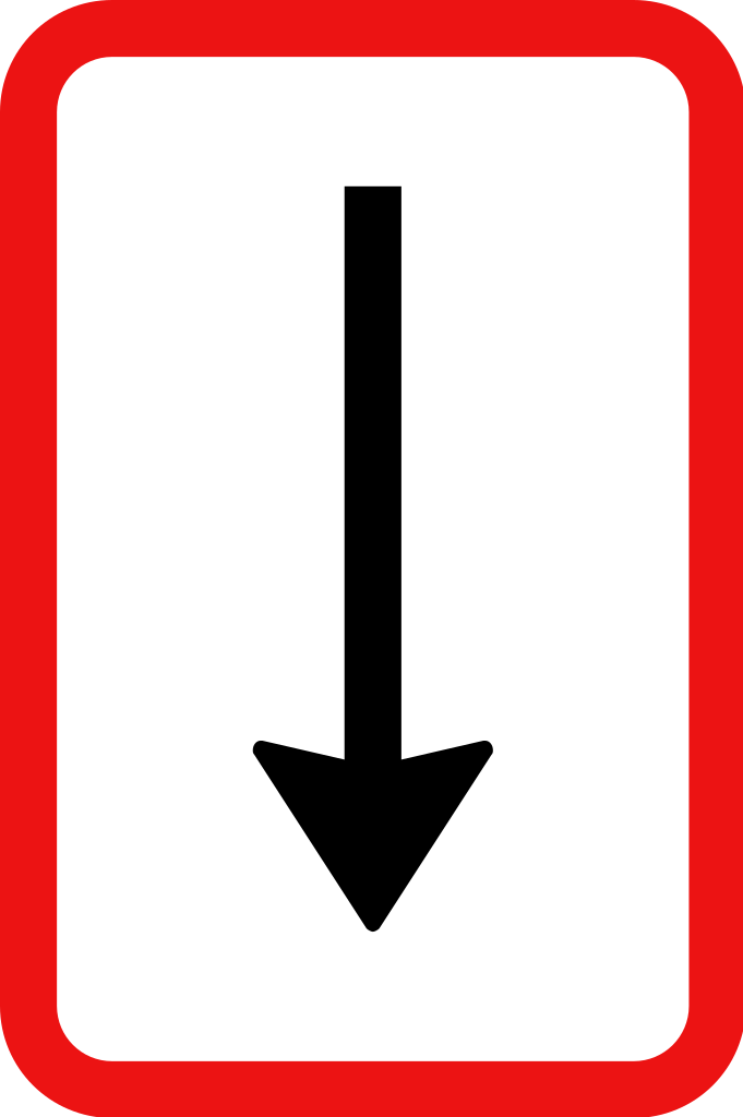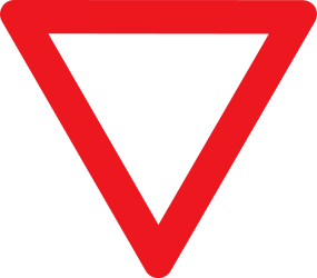 This traffic sign indicates you have to give way. It alerts drivers to yield the right of way to other road users. Drivers must slow down and yield to traffic on the intersecting road. Stop if necessary and proceed only when the way is clear. Common at: minor roads joining major roads, roundabouts and merging lanes.