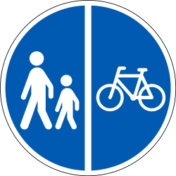 Mandatory divided path for pedestrians and cyclists.