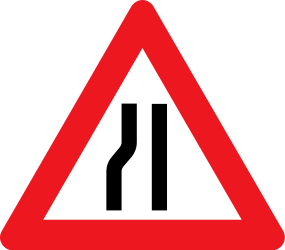 Warning for a road narrowing on the left.