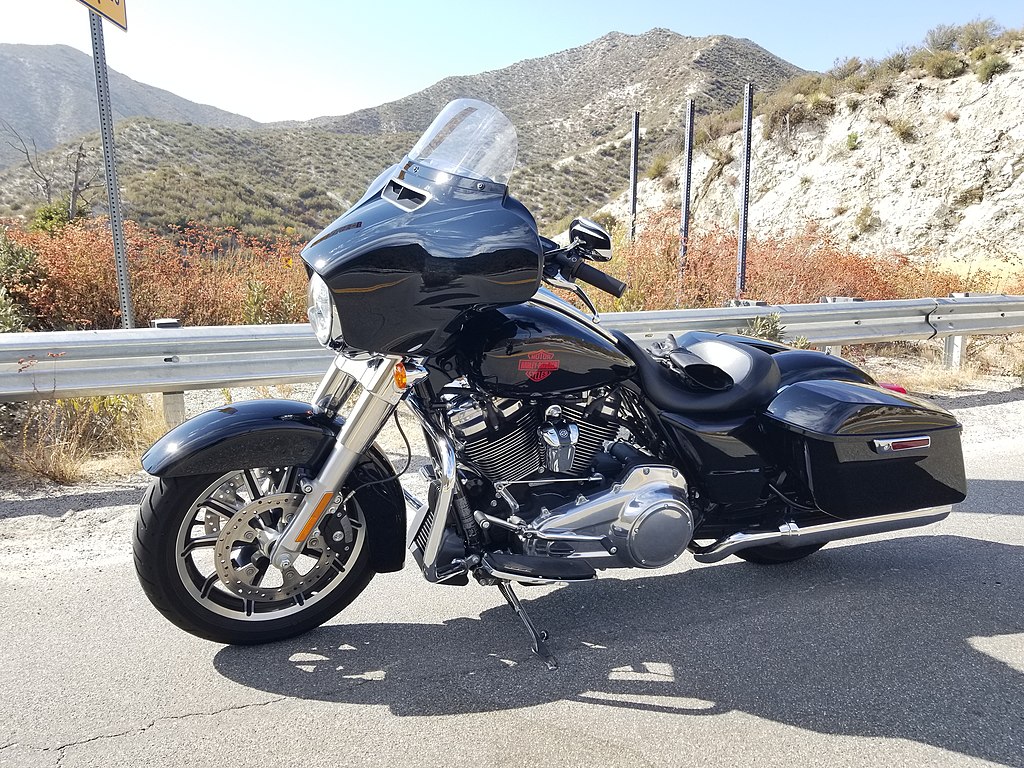 Harley-Davidson FL is a model designation used for Harley-Davidson motorcycles since 1941, when F referred to the new large capacity 74 cui (1200cc) variant of the V-2 Overhead valve engine (″Knucklehead″) that was introduced in 1936 as Model E with 61 cui (1000cc). The presence of an additional letter L indicated higher compression, offering more power but requiring higher octane gasoline. In 1950s, the low compression version was discontinued, and in 1952 also the low capacity EL, making FL the standard engine and model designation for decades to come. (Source: Wikipedia.org, CC BY-SA)