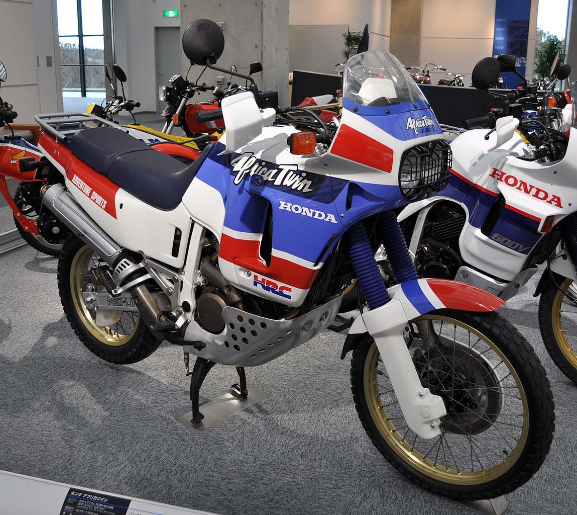 The Honda Africa Twin is a dual-sport motorcycle made by Honda in four versions, 1988 to 1989 as the 650 cc (40 cu in) V-twin XRV650, then from 1990 to 2000 as the 750 cc (46 cu in) V-twin XRV750T, then from 2016 to 2019 as the 1,000 cc (61 cu in) parallel-twin CRF1000L and from 2020 to present as the CRF1100L. The Africa Twin, also known as the Honda XRV750, is a 742 cc dual-sport motorcycle manufactured by Honda. The motorcycle was based on the NXR-750 which won the Paris-Dakar rally four times in the late eighties. It was preceded by the eponymous XRV650 Africa Twin which was a lighter, higher specification version made in 1988 and 1989 by Honda Racing Corporation with a 650 cc engine producing 42 kW (56 hp). The much earlier Honda XLV750R was a shaft driven motorcycle. (Source: Wikipedia.org, CC BY-SA)
