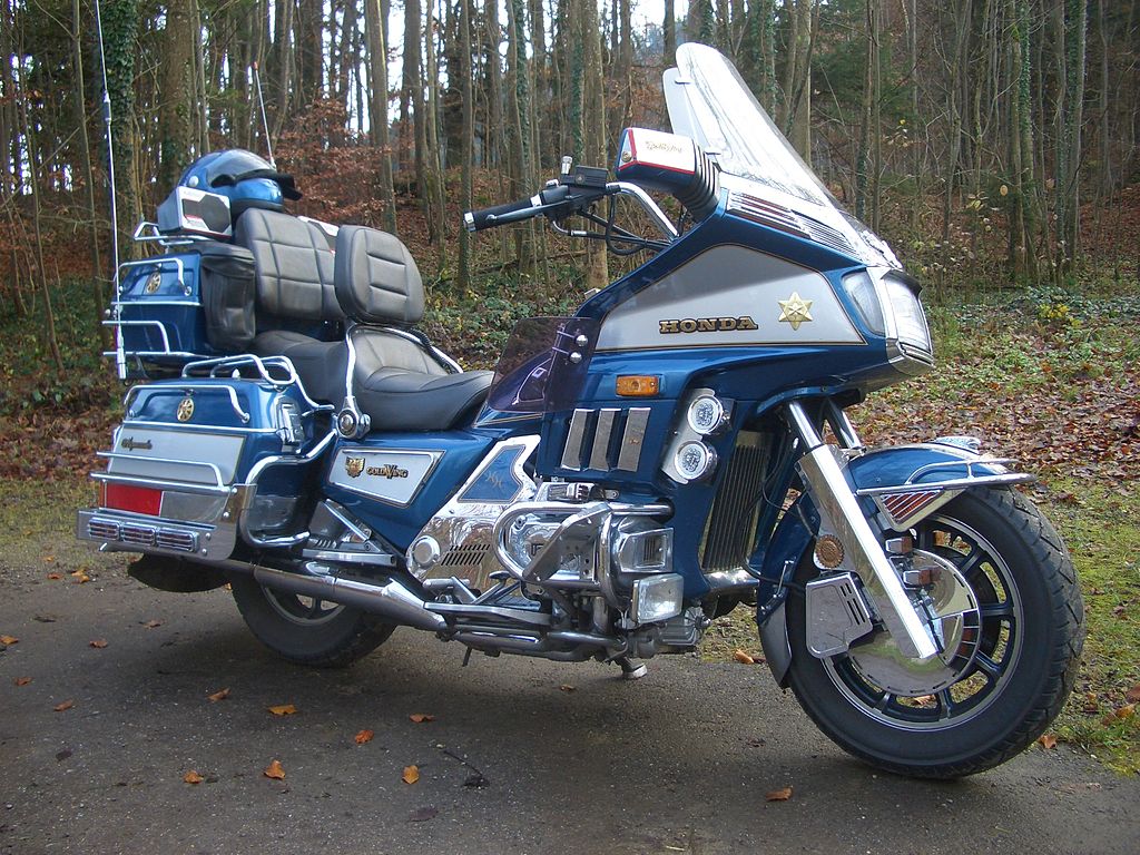 The Honda Gold Wing is a series of touring motorcycles manufactured by Honda. Gold Wings feature shaft drive and a flat engine. Characterized by press in September 1974 as 'The world's biggest motor cycle manufacturer's first attack on the over-750cc capacity market...', it was introduced at the Cologne Motorcycle Show in October 1974. Total sales are more than 640,000, most of them in the U.S. market. Gold Wings were assembled in Marysville, Ohio, from 1980 until 2010, when motorcycle production there was halted. No Gold Wings were produced for the 2011 model year, and production resumed in Kumamoto Prefecture, Japan in 2011 using tooling transported from the American factory. (Source: Wikipedia.org, CC BY-SA)